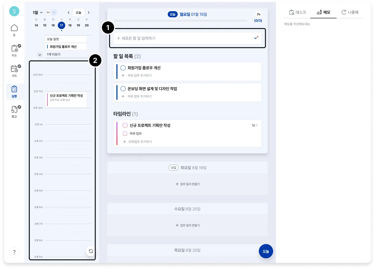 ➋ 왼쪽의 타임라인 영역을 클릭해 할 일을 추가하기